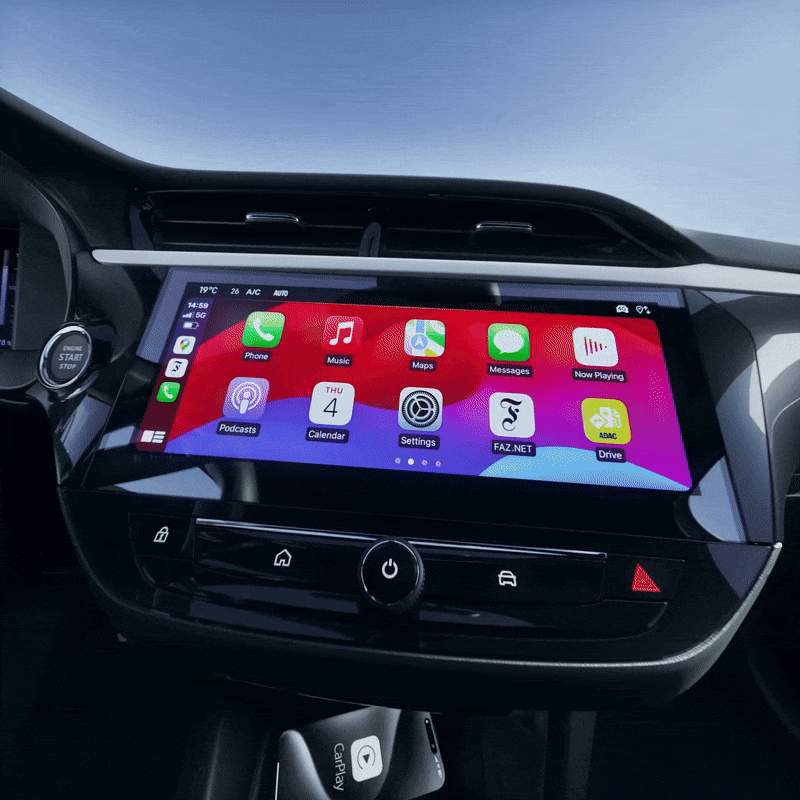 Nepārtrauciet savu digitālo dzīvi – ņemiet to sev līdzi visur! Bezvadu režīmā projicējiet sava viedtālruņa saturu 10" multimediju skārienekrānā, izmantojot Apple CarPlay™ vai Android Auto™, vienlaikus uzlādējot tālruni. Un tas viss – bezvadu režīmā. Vairs nekādu "es aizņēmos Tavu kabeli". Tikai nevainojams savienojums. Bezvadu uzlāde GS aprīkojuma līmenī ir pieejama kā papildaprīkojums.